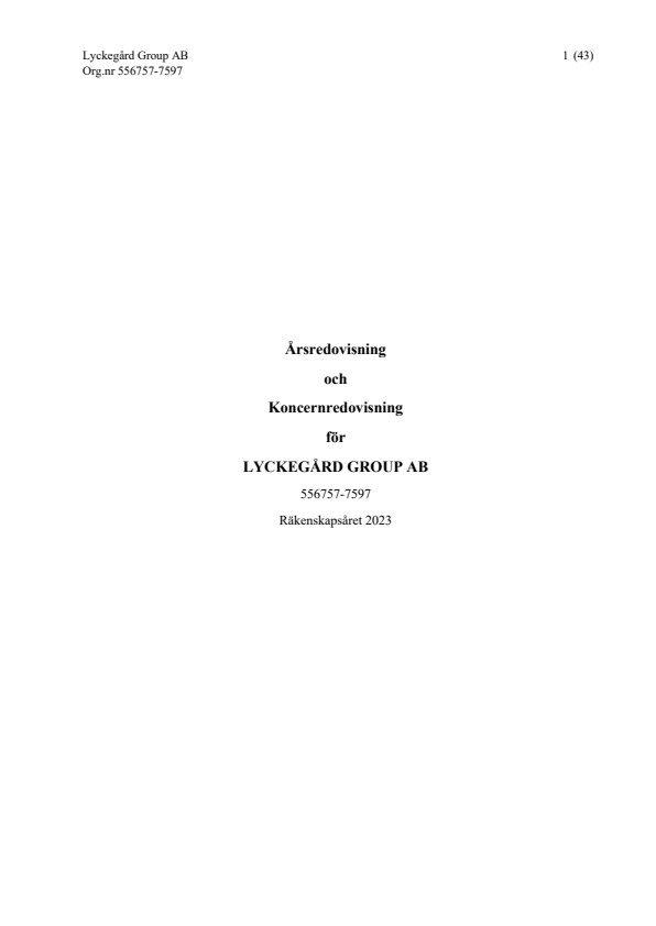 Lyckegård Group AB meddelar härmed att bolaget har offentliggjort sin årsredovisning för 2023.